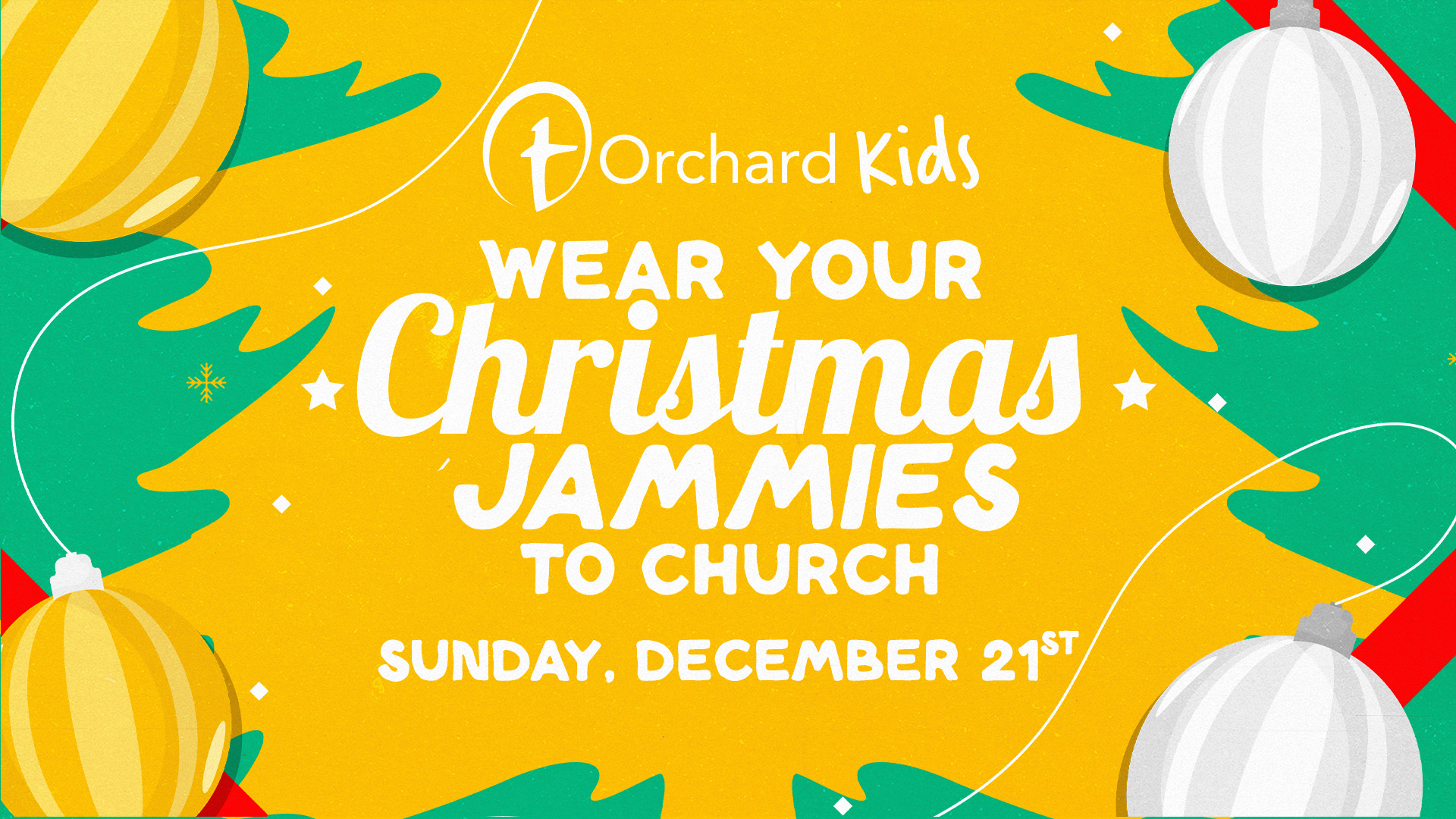Orchard Kids invites you to wear Christmas Jammies to church on December 21!
